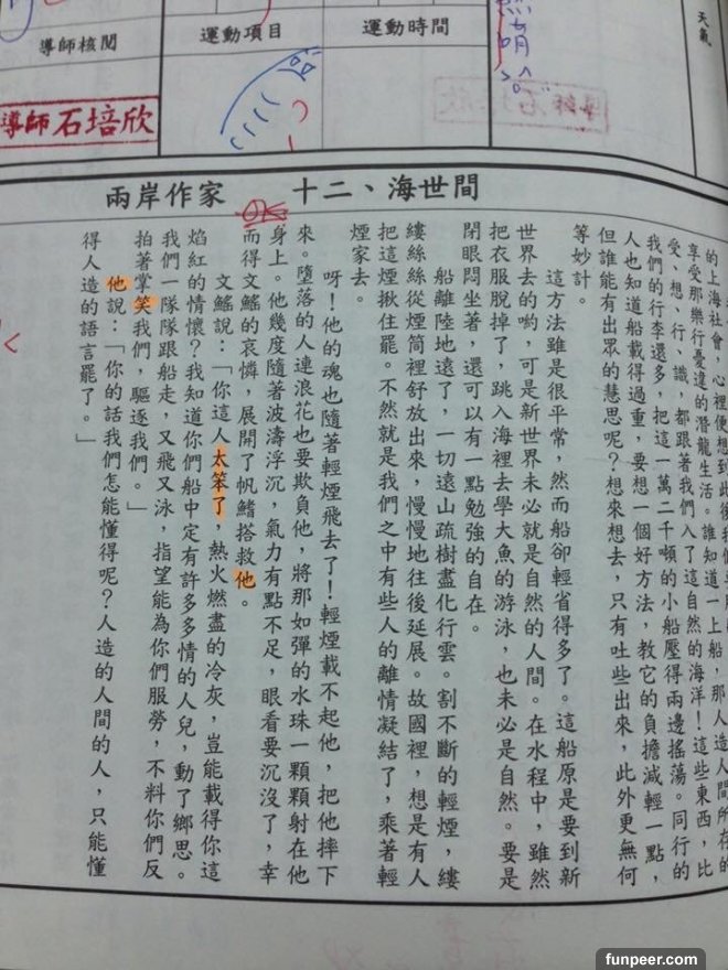 昨天看到國中導欸分享我們班以前寫的聯絡簿內容,發現真的太好笑,完全勾起回憶啊 (國中的聯絡簿下面有文章,導師就會叫我們看文章後畫重點,但國三壓力大容易做一些瘋狂事,於是我們開始亂畫重點……)